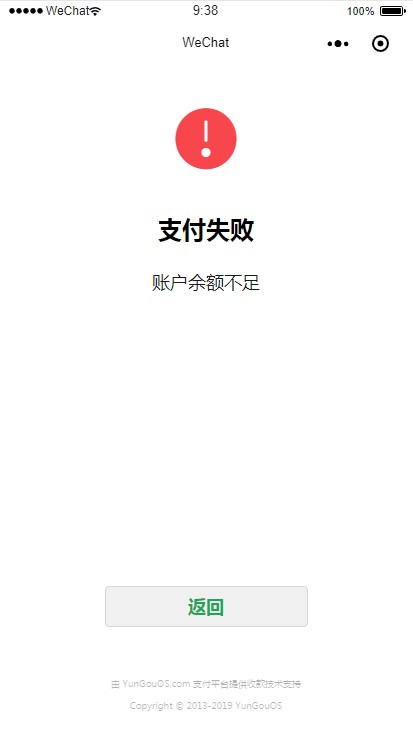 注意事项:请注意在自己的页面中做交互处理,原则上来说在 “支付收银” 里面我们不提倡跟用户做交互,所有错误均返回给您自己的小程序。请通过App.onShow方法获取到支付结果进行交互