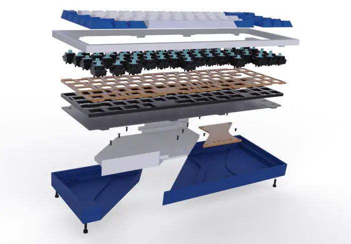 - PCB: 1.5mm 蓝色镀金FR4,type-C daughterboard,QMK/VIA支持。不支持热插拔