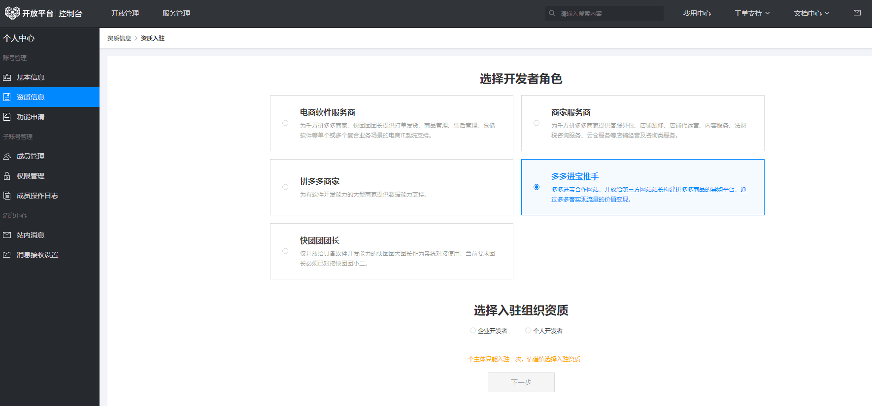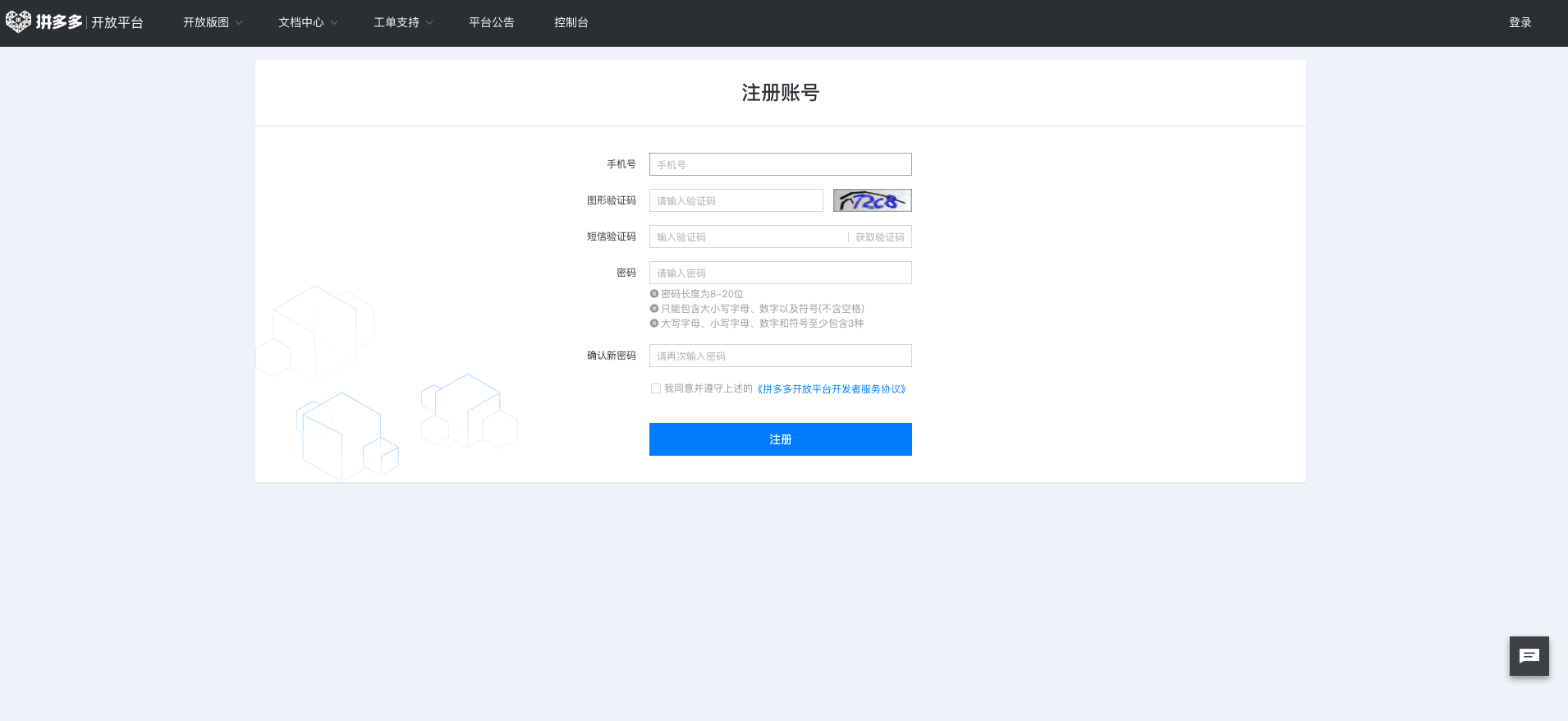 注意:此账号不一定与多多进宝账号相同,请妥善保管开放平台账号密码