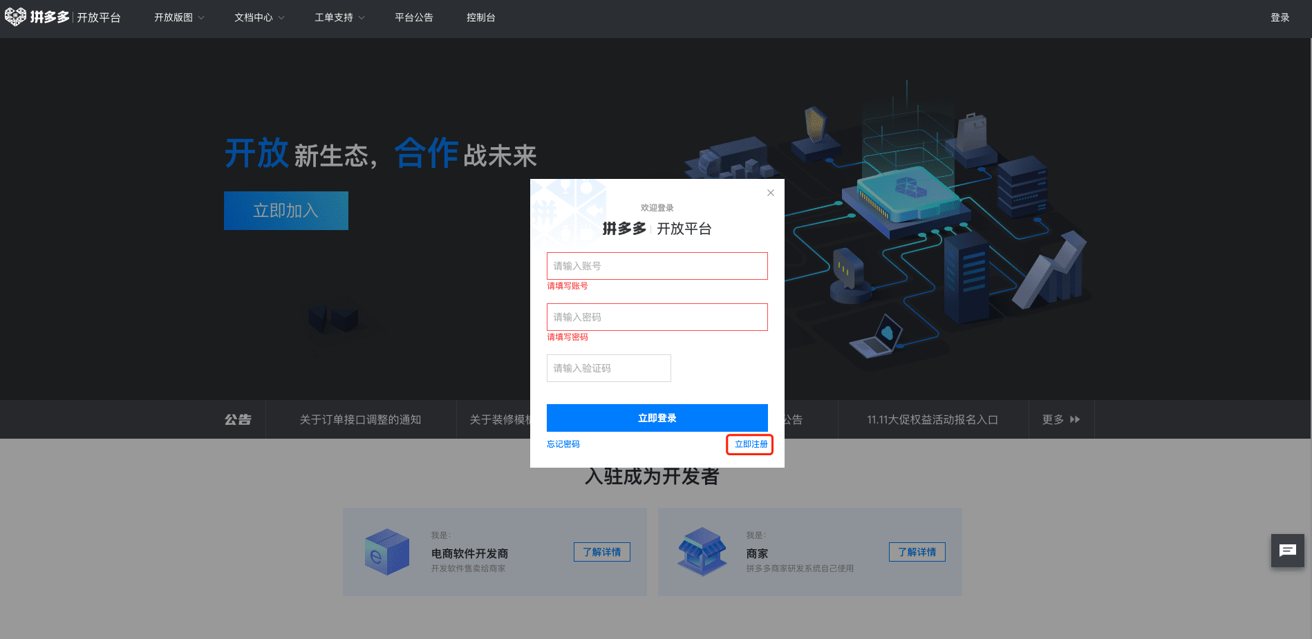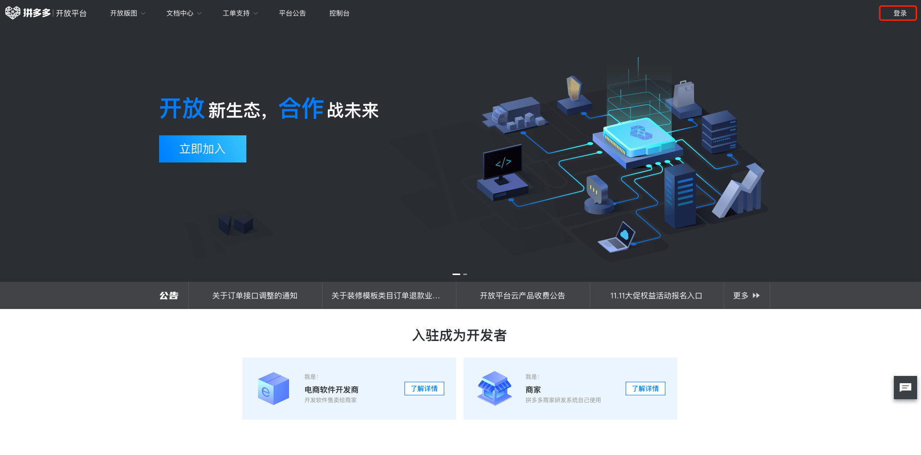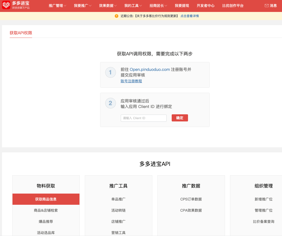 拼多多开放平台网址:https://open.pinduoduo.com/application/home
