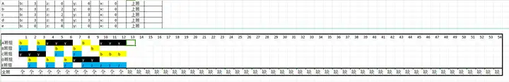 你可以看一下这个逻辑,黑色是夜班,黄色是白班,蓝色是正常班,还有个深蓝色是休一天我没有写,因为我写的函数会计算上满20天的休假数,所以避免算成休假天数就没写。